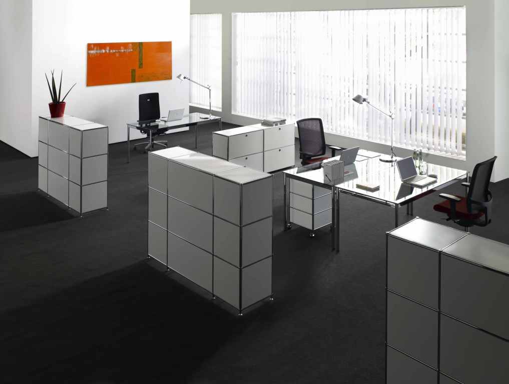 Mit Büromöbelsystemen lassen sich alle Büroformen vom Einzelarbeitsplatz, Kombi- und Großraumbüro bis hin zu interdisziplinärem Benchworking gekonnt einrichten. Die Tischprogramme werden ergänzt um Schranksysteme und Containerlösungen.